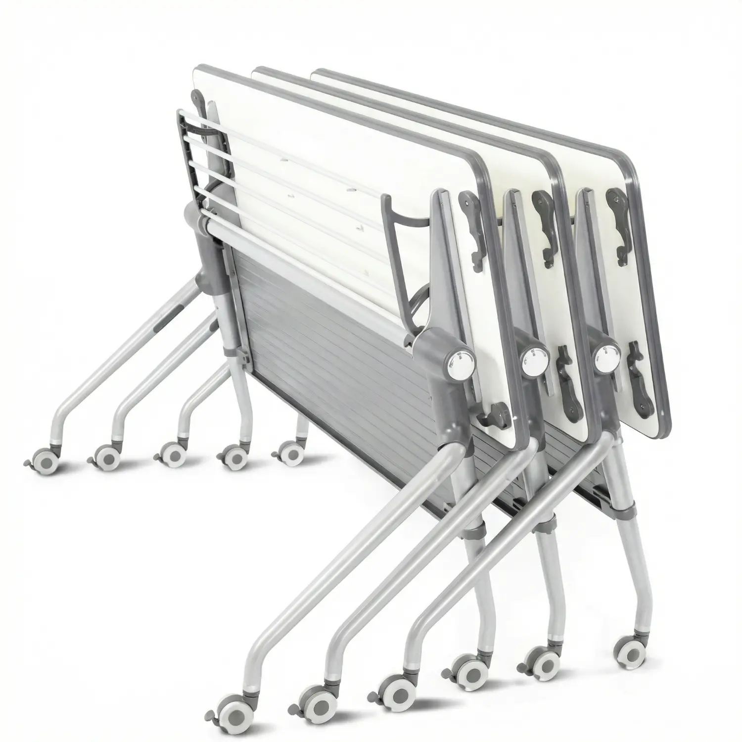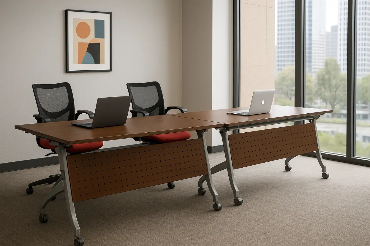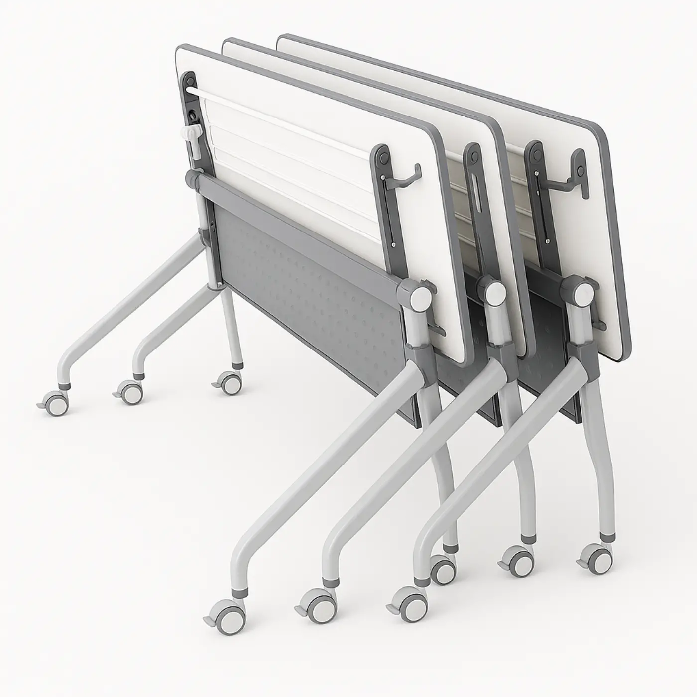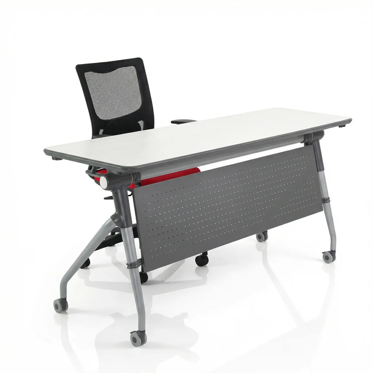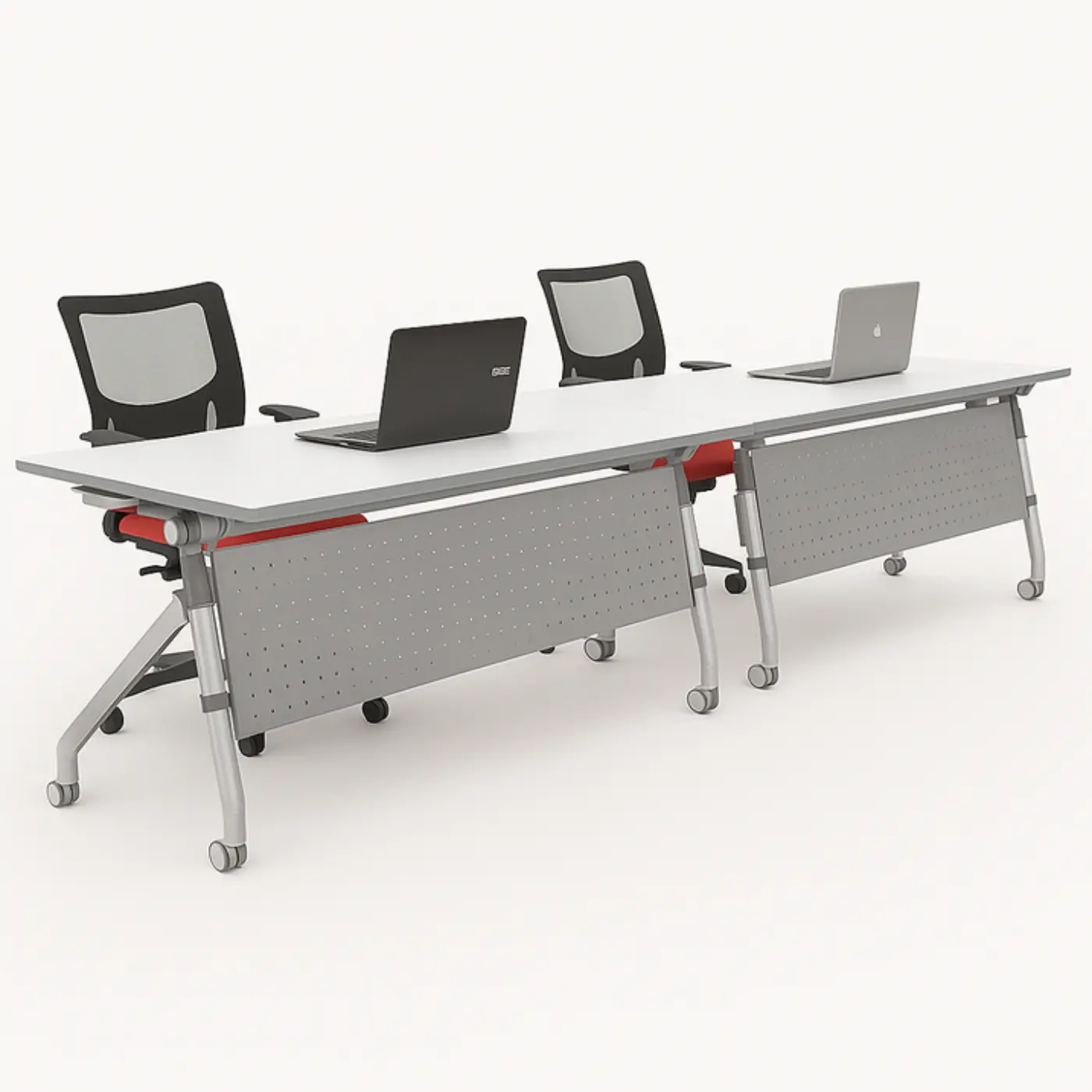 Escritorio abatible con estructura de acero y cubierta en melamina.
