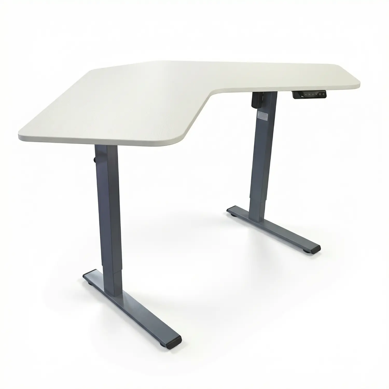 Escritorio colaborativo con estructura de acero y altura eléctrica ajustable.