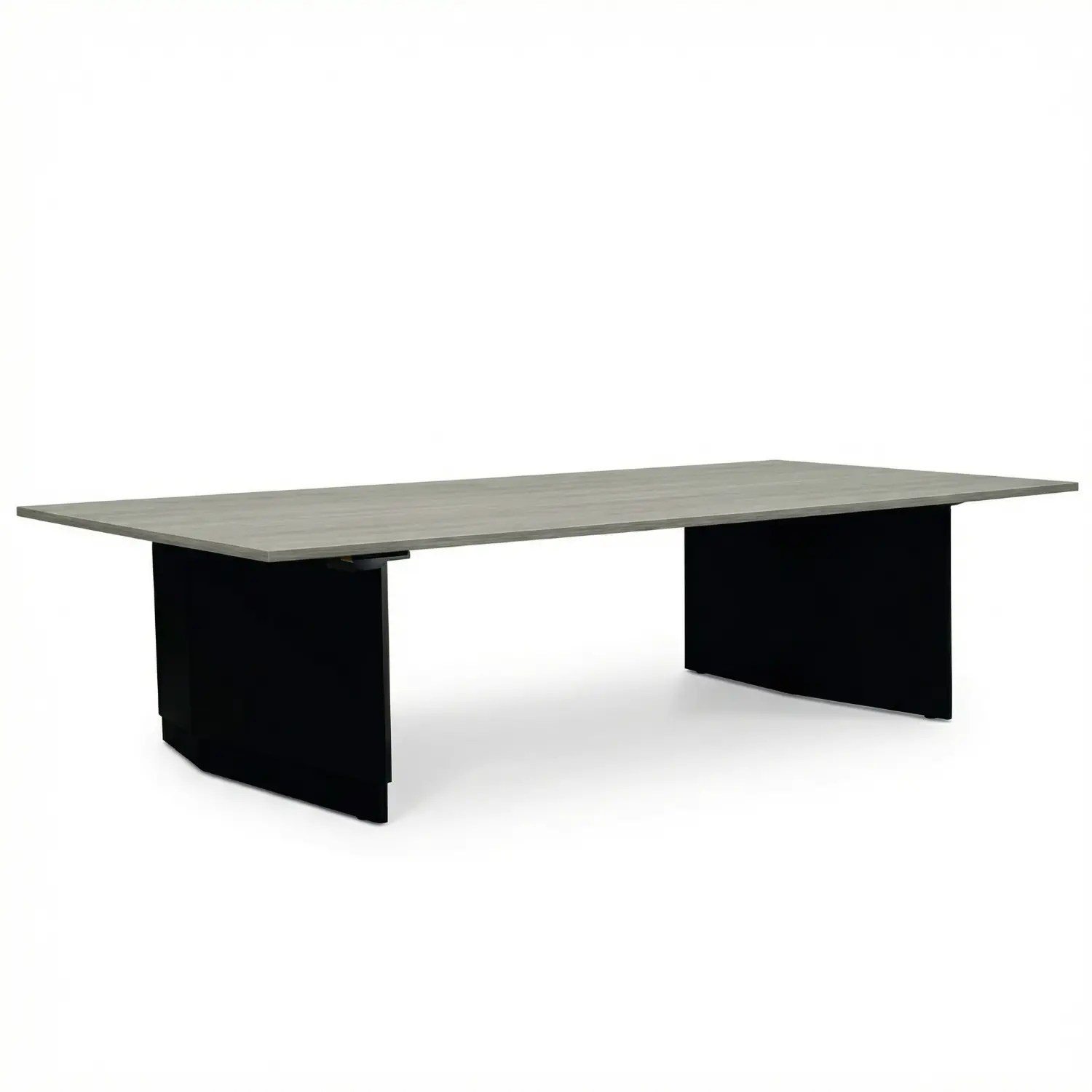 Mesa de juntas con estructura en acero y sistema eléctrico de elevación ajustable mediante control digital. Diseño ejecutivo con cubierta en melamina de 19 mm.